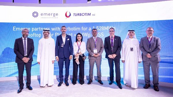 أبرمت شركة إميرج، وهي ثمرة تعاون بين شركة أبوظبي لطاقة المستقبل (مصدر) وشركة كهرباء فرنسا (EDF)، شراكة مع شركة توربوتيم الإماراتية. وستؤدي هذه الاتفاقية، التي أُعلن عنها خلال منتدى "صنع في الإمارات"، إلى مشروع للطاقة الشمسية في موقع توربوتيم برأس الخيمة. ويتضمن المشروع نظامًا للطاقة الشمسية الكهروضوئية على السطح بقدرة 1.52 ميجاواط، مُزودًا بنظام تخزين بطاريات بقدرة 5 ميجاواط/ساعة.