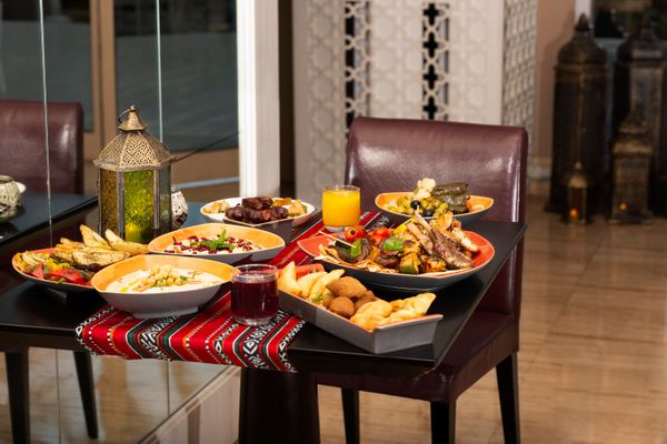 استمتعوا بمائدة تزخر بما لذّ وطاب من المأكولات التقليدية والعالمية. البداية مع تشكيلة من التمور، والفواكه المجفّفة، والمكسّرات، والعصائر الطازجة، إلى جانب رُكن الحساء والخبز. تشمل المأدبة أيضًا المازة الساخنة والباردة، والسلطات، والديم سوم، والركن الآسيوي، والشاورما، ومحطة الأوزي، بالإضافة إلى تشكيلة واسعة من الأطباق الرئيسية والكباب الشهي. والختام مسك مع حلويات عربية لذيذة، مثل أم علي والفواكه الطازجة.