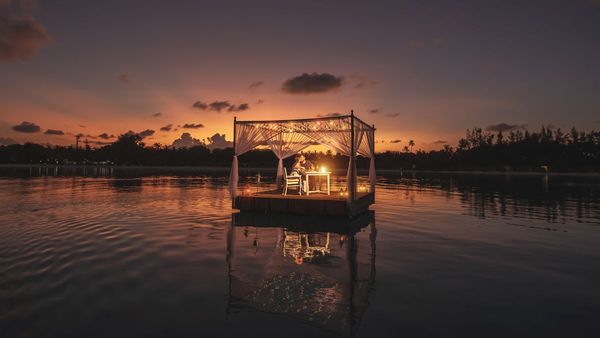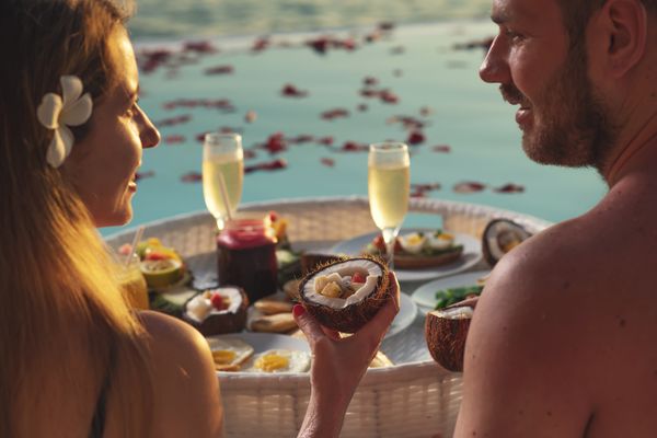 يبدأ كل يوم في المنتجع بأشهى المأكولات الحميمية التي يمكن حجزها مسبقًا، بما في ذلك "الإفطار في السرير" الحالم و"إفطار رومانسي على شكل بحيرة ميموزا"، مما يسمح للأزواج بالاستمتاع بشروق الشمس المذهل. مع حلول المساء، يحتل الحب مركز الصدارة مع تجارب تناول الطعام الحصرية، مثل "عشاء ساندبانك" الخاص تحت سماء مضاءة بالنجوم، أو "عشاء عشاق النبيذ" المتطور مع ثنائيات منسقة، أو "وليمة العشاق وشواء الشاطئ".