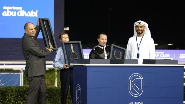 نادي أبوظبي للفروسية يحتفل بالفائزين في السباق الثالث بثلاثية للفارس تاج أوشيا