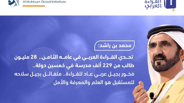 يواصل تحدي القراءة العربي، الذي أطلقه صاحب السمو الشيخ محمد بن راشد آل مكتوم في عام 2015، نموه، حيث استقطب أكثر من 131 مليون طالب وطالبة عبر ثماني دورات. وتهدف هذه المبادرة إلى تعزيز ثقافة القراءة بين الشباب العربي، وإثراء معارفهم وتعزيز ارتباطهم باللغة العربية.