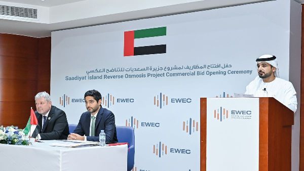 تلقت شركة مياه وكهرباء الإمارات أربعة عطاءات لإنشاء محطة جديدة لتحلية مياه البحر في جزيرة السعديات. سيستخدم هذا المشروع تقنية التناضح العكسي في إطار نموذج المنتج المستقل. ومن بين مقدمي العروض شركات Acciona وEngie وGS Enema وكونسورتيوم FCC Aqualia وأوراسكوم للإنشاءات.