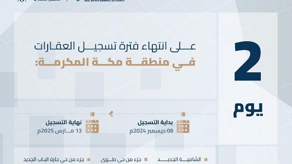 اقتراب موعد تسجيل العقارات في منطقة مكة المكرمة