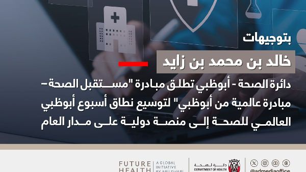 أطلقت دائرة الصحة - أبوظبي مبادرة "مستقبل الصحة - مبادرة عالمية من أبوظبي" بتوجيه من سمو الشيخ خالد بن محمد بن زايد آل نهيان. تُحوّل هذه المبادرة أسبوع أبوظبي للصحة العالمية إلى منصة عالمية على مدار العام للحوار والابتكار في قطاع الصحة.