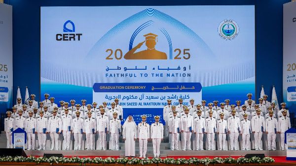 احتفل مركز التميز للأبحاث التطبيقية والتدريب (CERT) وكلية راشد بن سعيد آل مكتوم البحرية مؤخرًا بتخريج دفعة جديدة من طلاب بكالوريوس العلوم في الدراسات البحرية. وحمل الحفل شعار "مخلصون للوطن"، مسلطًا الضوء على تفاني الخريجين والتزامهم بخدمة وطنهم، ليكونوا قدوة للأجيال القادمة، واصلين مسيرة التنمية في دولة الإمارات العربية المتحدة في ظل قيادتها الرشيدة.