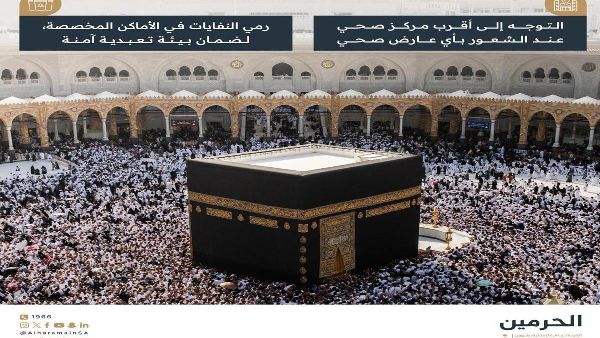 يُنصح الزوار بتجنب الازدحام عند دخول المسجد الحرام أو مغادرته. وفي حال ظهور أي أعراض صحية، يُرجى مراجعة أقرب مركز صحي فورًا. ويجب التخلص من النفايات في الأماكن المخصصة لذلك للحفاظ على بيئة آمنة للعبادة.