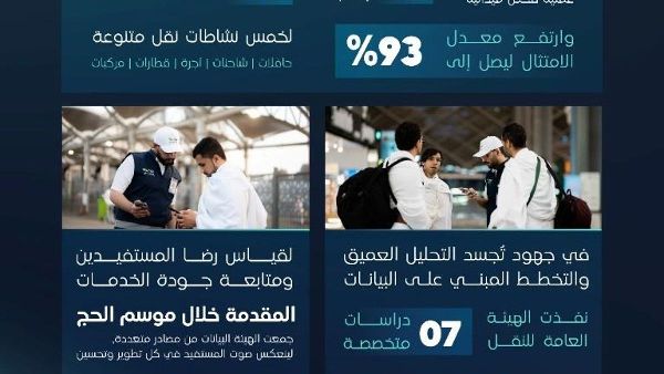 كرّست الهيئة العامة للنقل جهودها لضمان نقل آمن للحجاج خلال موسم حج 1446هـ. وركزت جهودها على تقديم خدمات تلبي أعلى معايير التشغيل. وشمل ذلك إطلاق مبادرة لقياس رضا العملاء وإجراء دراسات ميدانية حول أنشطة النقل.