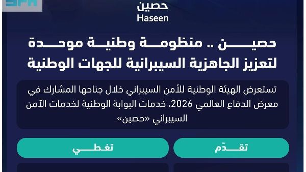 من المقرر أن تعرض بوابة حسين الوطنية لخدمات الأمن السيبراني خدماتها المتقدمة في مجال الأمن السيبراني خلال معرض الدفاع العالمي 2026. وسيسلط حضور البوابة في المعرض الضوء على كيفية دعمها لأكثر من 1700 جهة، وعرضها لقدراتها الآلية وتدابيرها الاستباقية، وانعكاسها لسنوات من العمل المتواصل في التقييم والمراقبة والاستجابة للحوادث في مختلف قطاعات الأمن السيبراني بالمملكة.