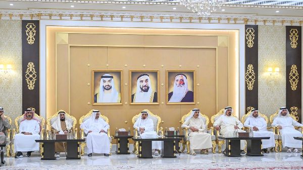 حميد بن راشد يتلقى التعازي من حاكمي الفجيرة وأم القيوين بوفاة الشيخ سعيد