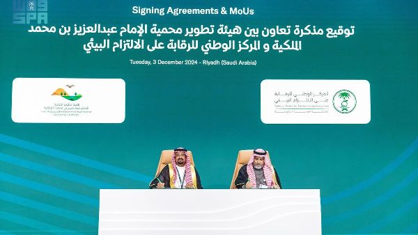 أبرمت هيئة تطوير محمية الإمام عبد العزيز بن محمد الملكية مذكرة تعاون مع المركز الوطني للرقابة البيئية، وذلك خلال منتدى المبادرة الخضراء السعودية، الذي تزامن مع المؤتمر السادس عشر لأطراف اتفاقية الأمم المتحدة لمكافحة التصحر (COP 16). ويهدف التعاون إلى تعزيز الجهود المشتركة في الحفاظ على البيئة ودعم التنمية المستدامة.