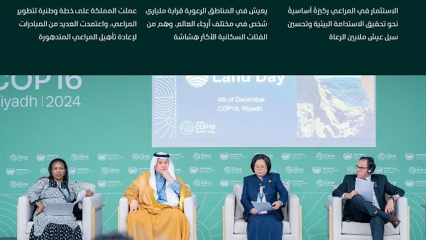 خلال جلسة مؤتمر الأطراف السادس عشر حول حماية المراعي، أكد المهندس الفضلي على الاهتمام الكبير الذي حظيت به المراعي الطبيعية هذا العام. إن تدهور هذه المناطق يمكن أن يقضي على سدس إمدادات الغذاء العالمية ويقلل ثلث مخزونات الكربون على الأرض. يعيش ما يقرب من ملياري شخص في مناطق رعوية في جميع أنحاء العالم، مما يجعلهم عرضة لتدهور الموارد وتأثيرات الجفاف.