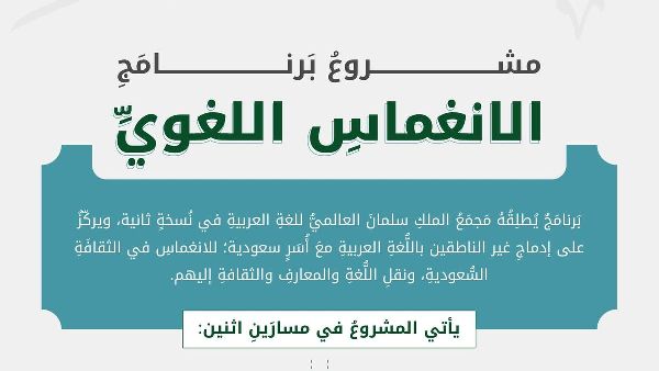 فتحت أكاديمية الملك سلمان الدولية للغة العربية باب التسجيل في النسخة الثانية من برنامج "الانغماس اللغوي"، وهي مبادرة تقدم دورات تعليمية قصيرة الأجل تستهدف الناطقين بغير العربية، ويتضمن البرنامج مسارات مثل اللغة العربية لأغراض سياحية وثقافية، تهدف إلى تعليم اللغة في سياقها المحلي من خلال انغماس المتعلمين في المجتمع السعودي وتعريضهم للتنوع الثقافي في المملكة.