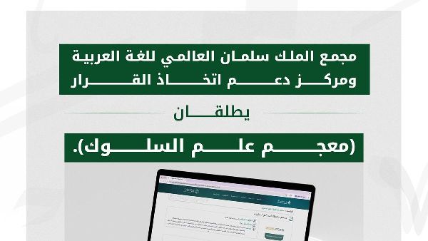 أطلقت أكاديمية الملك سلمان العالمية للغة العربية، بالتعاون مع مركز دعم القرار، "قاموس العلوم السلوكية" باللغة العربية. يُعدّ هذا القاموس مرجعًا علميًا شاملًا للمصطلحات والمفاهيم في العلوم السلوكية، ويهدف إلى مساعدة الباحثين والمتخصصين من خلال توفير معلومات دقيقة في مجالات مثل علم النفس وعلم الاجتماع وسلوك الإنسان والحيوان.