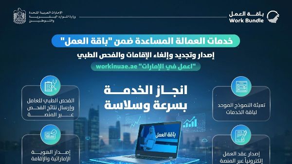 أطلقت دولة الإمارات العربية المتحدة خدمةً مُبسّطةً للعمالة المنزلية ضمن "باقة العمل". تهدف هذه المبادرة، التي تقودها وزارة الموارد البشرية والتوطين وجهات حكومية رئيسية أخرى، إلى تبسيط إجراءات إصدار وتجديد الإقامات. تُسهّل المنصة الرقمية الموحدة "workinuae.ae" هذه الخدمات، مما يُحسّن تجربة العملاء، ويدعم هدف دولة الإمارات العربية المتحدة في أن تصبح وجهةً عالميةً رائدةً للعيش والعمل.