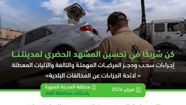 وتهيب الأمانة بأصحاب المركبات المهجورة أو التالفة داخل المناطق السكنية بالمدينة المنورة والمناطق المحيطة بها إزالة مركباتهم بشكل استباقي. وتؤكد هذه الدعوة على المسؤولية الجماعية للمجتمع في الإبلاغ عن مثل هذه الحالات من خلال إخطار البلدية الموحد رقم 940 أو عبر تطبيق "بلدي"، مما يؤكد أهمية التعاون في الحفاظ على جاذبية المدينة البصرية.