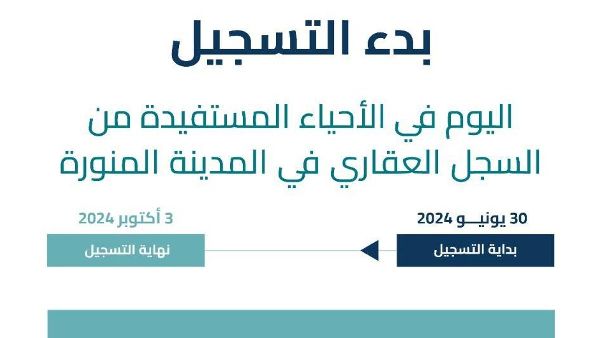 بدأ السجل العقاري عملية تسجيل 4774 قطعة أرض عقارية في ستة أحياء بالمدينة المنورة. وتشمل هذه المناطق أجزاء من حي الملك فهد، وحي العاقول، وحي جمعة أم، وحي خالد للسكك الحديدية، وحي الخضراء، وحي أبيار الماشي. ودعا أصحاب العقارات إلى تسجيل عقاراتهم من خلال منصة السجل العقاري rer.sa.
