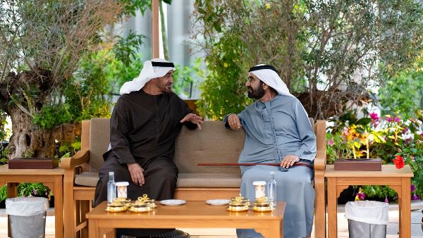 التقى صاحب السمو الشيخ محمد بن زايد آل نهيان، رئيس الدولة، بصاحب السمو الشيخ محمد بن راشد آل مكتوم، نائب رئيس الدولة رئيس مجلس الوزراء حاكم دبي، في منتجع المرموم بدبي. وتناول اللقاء، الذي عُقد في 18 مارس/آذار، القضايا الوطنية وأهداف التنمية في دولة الإمارات. وأعرب الزعيمان عن تطلعاتهما إلى دوام الرخاء والتقدم للوطن.