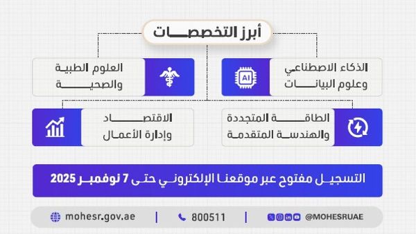 وزارة التعليم العالي تطلق التسجيل للمنح الدراسية للطلبة الإماراتيين في ربيع 2026