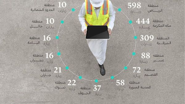 وأوضح جراح الجراح المتحدث الرسمي باسم وزارة الصناعة والثروة المعدنية توزيع هذه الزيارات على مختلف المناطق. وشهدت منطقة الرياض أعلى عدد من الزيارات التفتيشية بـ 598 زيارة، تليها منطقة مكة المكرمة بـ 444 زيارة. كما تمت متابعة المنطقة الشرقية عن كثب بـ 309 زيارة. كما حظيت مناطق أخرى مثل عسير والقصيم والمدينة المنورة والجوف وتبوك وجازان ونجران والباحة وحائل ومنطقة الحدود الشمالية بالاهتمام أيضًا، وإن كان بعدد زيارات أقل.