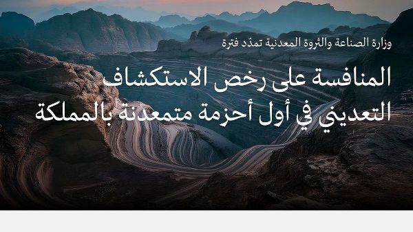 مددت وزارة الصناعة والثروة المعدنية، الموعد النهائي لتقديم طلبات التأهيل المسبق لرخص الاستكشاف في الأحزمة المعدنية بالمملكة العربية السعودية، وذلك لإتاحة المزيد من الوقت للشركات المحلية والعالمية لتقديم الطلبات، وتعزيز المشاركة. وتبدأ فترة التقديم الجديدة من 7 إلى 31 أكتوبر/تشرين الأول، وتغطي مساحة قدرها 4788 كيلومتراً مربعاً.