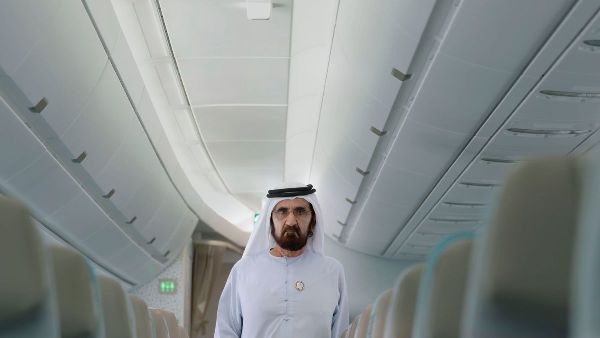 محمد بن راشد آل مكتوم يطلع على طائرة إيرباص A350 الجديدة المنضمة لأسطول طيران الإمارات