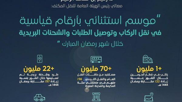 تحطيم الأرقام القياسية للركاب والبريد في النقل العام السعودي في رمضان 1445هـ