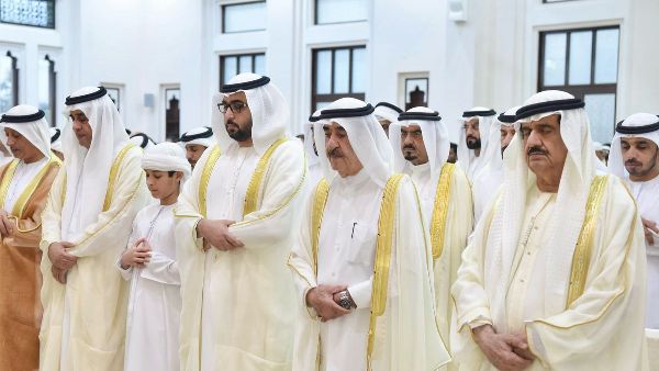 حاكم أم القيوين يؤدي صلاة عيد الفطر في مسجد الشيخ أحمد بن راشد المعلا