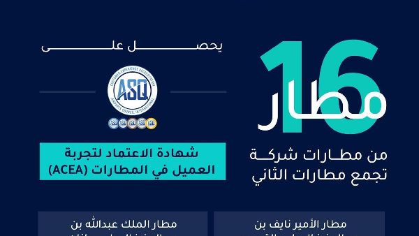 الرياض 21 شوال 1445هـ الموافق واس - في خطوة مهمة نحو تعزيز خدمة العملاء والتميز التشغيلي، حققت شركة مجموعة المطارات الثانية مؤخرًا إنجازًا ملحوظًا في قطاع الطيران المدني. وقد حصل إجمالي 16 مطارًا تحت إدارتها على الاعتماد من المجلس الدولي للمطارات لتجربة العملاء (ACEA). ويعد هذا التقدير بمثابة شهادة على الجهود الحثيثة والتفاني الذي تبذله كل من الهيئة العامة للطيران المدني في التدابير التنظيمية وشركة مجموعة المطارات الثانية في التطورات التشغيلية لرفع جودة الخدمات والتجارب المقدمة للمسافرين.