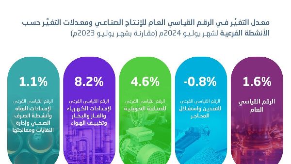 ارتفاع الناتج الصناعي السعودي بنسبة 1.6% في يوليو 2024 وسط ارتفاع التصنيع