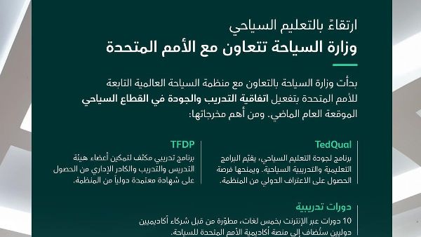 المملكة العربية السعودية تتعاون مع منظمة السياحة العالمية لرفع معايير التعليم السياحي