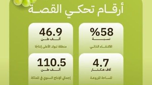 إنتاج السعودية من العنب يتجاوز 110 آلاف طن سنوياً.. ومنطقة تبوك تسيطر على الإنتاج