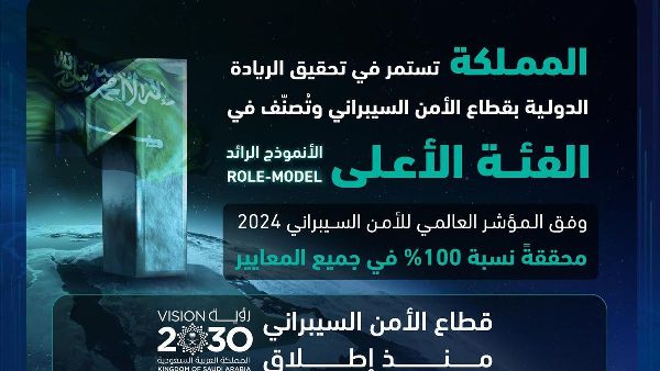 السعودية تضع معياراً عالمياً للأمن السيبراني بتصنيفها ضمن أفضل 10 دول في مؤشر الأمم المتحدة للأمن السيبراني لعام 2024