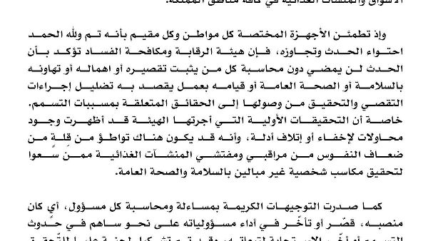 وأكدت هيئة الرقابة ومكافحة الفساد للمواطنين والمقيمين أنه تم احتواء الوضع. وشددت الهيئة على أنه سيتم محاسبة كل من يثبت إهماله أو تورطه في تضليل إجراءات التحقيق. وكشفت التحقيقات الأولية عن محاولات لإخفاء الأدلة أو إتلافها، مما يشير إلى احتمال وجود تواطؤ بين بعض المفتشين الذين يسعون لتحقيق مكاسب شخصية.