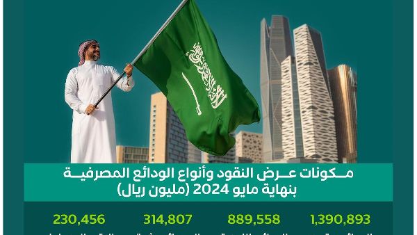 شهد النظام الاقتصادي السعودي ارتفاعاً كبيراً في مستويات السيولة، حيث بلغت ذروتها عند 2,825,715 مليون ريال بنهاية مايو 2024. ويمثل ذلك معدل نمو سنوي 8.6%، بارتفاع أكثر من 222,928 مليار ريال مقارنة بنفس الفترة من عام 2023. والتي بلغت 2,602,786 مليون ريال. وتعكس هذه الأرقام العرض النقدي الواسع والشامل (م3)، حسبما ورد في النشرة الإحصائية الشهرية للبنك المركزي السعودي لشهر مايو 2024.