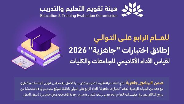 تستعد هيئة تقييم التعليم والتدريب لإطلاق النسخة الرابعة من اختبارات "الاستعداد" المعيارية، والتي ستُجرى في الفترة من 1 إلى 17 فبراير 2026. وستغطي هذه الاختبارات 51 تخصصًا جامعيًا في الجامعات السعودية، بمشاركة نحو 68 ألف طالب. وتهدف هذه الاختبارات إلى قياس مخرجات الخريجين ودعم أهداف رؤية المملكة العربية السعودية 2030.