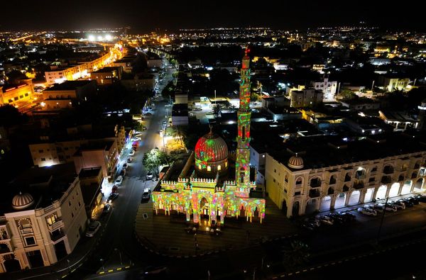 أما عرض "تناغم الفنون"، فيحوّل مسجد الطياري في دبا إلى تحفة فنية متألقة. ويقدم هذا العرض الساحر تجربة بصرية آسرة باستخدام تقنية الإسقاط ثلاثي الأبعاد، حيث تتشابك الأنماط الهندسية المتقنة والتصاميم الانسيابية والفسيفساء في تناغم رائع ينبض بالألوان الزاهية.