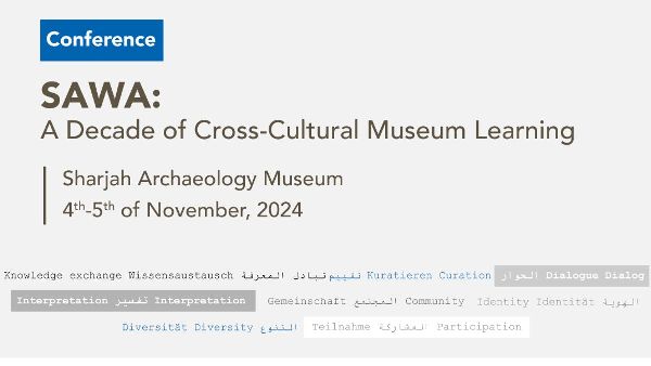 تستضيف هيئة الشارقة للمتاحف مؤتمر "سوا: 10 سنوات من التبادل الثقافي في التعليم المتحفي" يومي 4 و5 نوفمبر المقبل. ويصادف هذا الحدث مرور عقد على بدء برنامج "سوا" للمتاحف، بالتعاون مع مجموعة الهلال وهيئة الشارقة للتجارة والتنمية السياحية. وتدعم القنصلية العامة لألمانيا هذا المؤتمر الهجين، والذي يمكن حضوره عبر الإنترنت أو في متحف الشارقة للآثار.