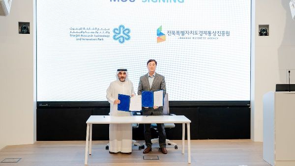 أبرم مجمع الشارقة للأبحاث والتكنولوجيا والابتكار مذكرة تفاهم مع وكالة أعمال جيونبوك الكورية، بهدف تعزيز التعاون التكنولوجي بين الجهتين. وستحدد وكالة أعمال جيونبوك الشركات الناشئة والشركات الصغيرة والمتوسطة في مقاطعة جيونبوك الراغبة في التوسع في دولة الإمارات العربية المتحدة، مع التركيز على تكنولوجيا الأغذية والتكنولوجيا الحيوية والرعاية الصحية وتحويل الطاقة.