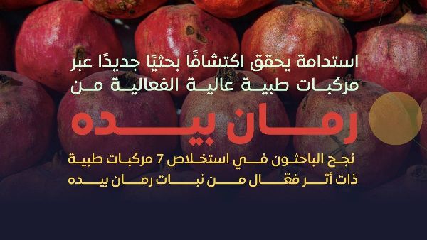 كشف المركز الوطني للبحوث والتنمية الزراعية المستدامة (استدامة) عن نتائج بحثية واعدة حول الإمكانات الطبية لرمان "البيضة"، وهو منتج زراعي فريد من نوعه من منطقة الباحة جنوب المملكة العربية السعودية. وأكد الدكتور خالد الرحيلي، المدير العام للمركز، أن الباحثين نجحوا في استخلاص وتكثير المركبات النشطة بيولوجيًا من هذا الرمان باستخدام المفاعلات الحيوية.