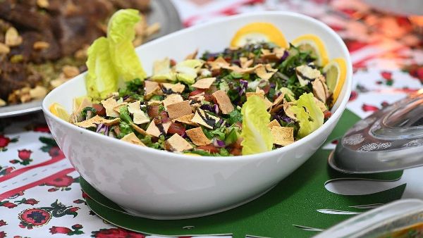 وفصل مجموعة أطباق الإفطار التي تعد من أساسيات العائلات السورية، بما في ذلك أنواع مختلفة من الحساء، والكبة المشوية والمقلية، والفتوش، والتبولة، والمحاشي، والمقلوبة، والحمص، والمتبل، وورق العنب، والفتة. كما تزين طاولاتهم الأطباق الحلوة مثل الكنافة والمشبك والقطايف والتمر الشامي إلى جانب المشروبات التقليدية مثل التمر الهندي وعرق السوس وعصائر قمر الدين.