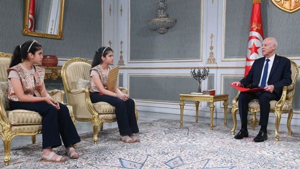 الرئيس التونسي قيس سعيد يُكرّم التوأم بيسان وبيلسان كوكة بطلتين لتحدي القراءة العربي 2025
