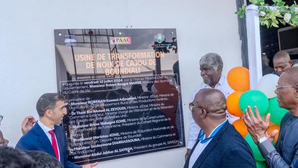 ويرمز افتتاح هذا المصنع المتطور لتجهيز الكاجو إلى الإمكانات الواعدة لمزيد من الاستثمارات الإماراتية في كوت ديفوار وإفريقيا بشكل عام. وهو بمثابة نموذج لتطوير القدرات الصناعية ودعم تطوير البنية التحتية داخل الدولة.