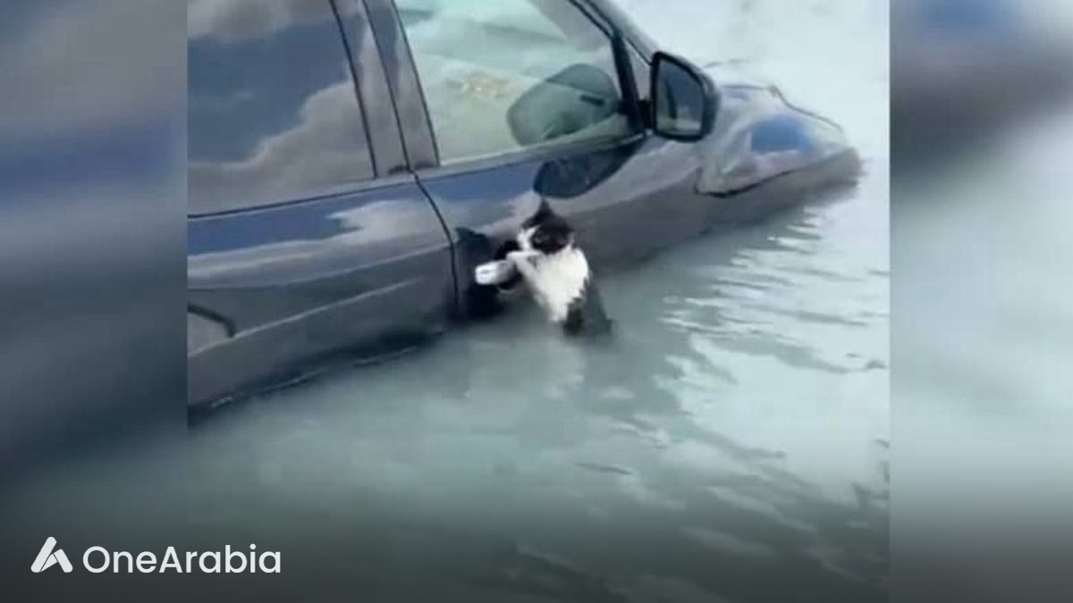 فيديو للحظة إنقاذ قطة عالقة بمياه الأمطار في دبي يثير تفاعلاً واسعاً
