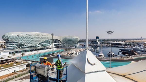 وتحضيرًا لأربعة أيام من الحماس والتشويق والترفيه في الحدث الرياضي والترفيهي العالمي في جزيرة ياس، تضع فرق العمل اللمسات الأخيرة على المدرجات الجديدة المميزة في الحلبة، واستعدادًا لوصول الجماهير، يستخدم فريق العمل خراطيم عالية الضغط لتنظيف المظلات المميزة لمدرجات وأبنية حلبة مرسى ياس البالغ عددها ٢٢٨ مظلة في جهد يستغرق ما مجموعه ٦٩٢٠ ساعة.