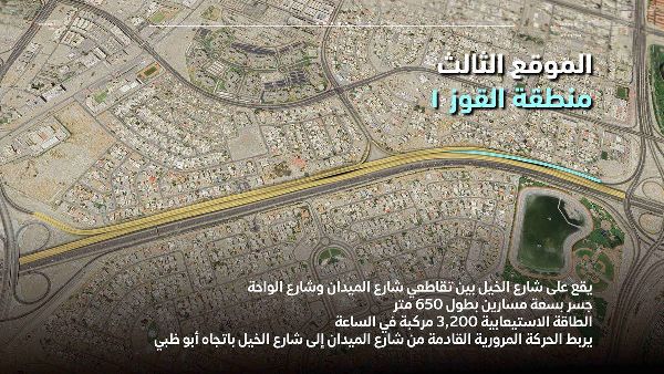 وتتضمن خطة التطوير إنشاء جسور بطول 3300 متر، وتوسيع وتعزيز مسارات الطرق بطول 6820 متراً. وتتوزع هذه التحسينات بشكل استراتيجي على سبعة مواقع مختلفة على طول طريق الخيل، بما في ذلك زعبيل، وميدان، والقوز الأولى، وغدير الطير، وقرية جميرا الدائرية. ومن المتوقع أن يؤدي هذا النهج الشامل إلى زيادة الطاقة الاستيعابية للتقاطعات والجسور الحالية بحوالي 19,600 مركبة في الساعة.